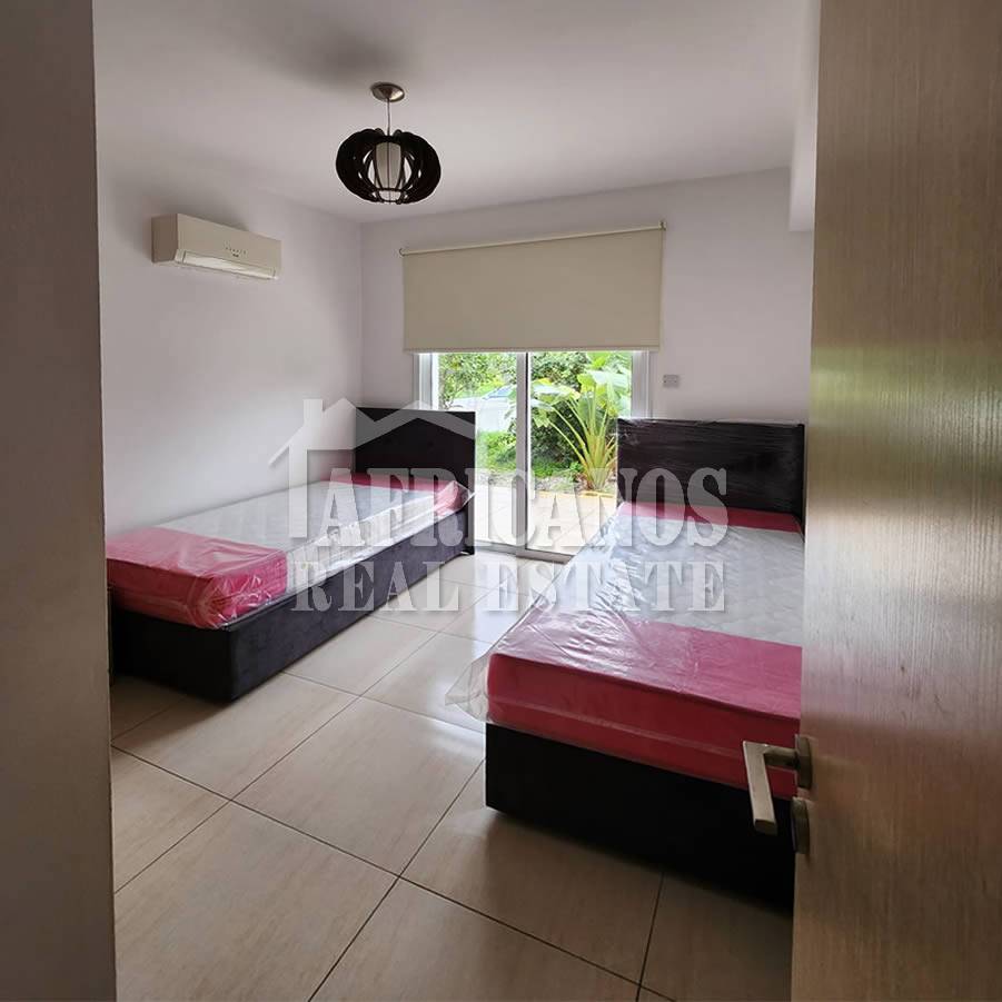 #Apartment for rent in Larnaca, Pyla area. The property consists of 2 bedrooms, open plan kitchen, living room, 1 bath, 1wc, partly covered verandas, common pool, common indoor pool, gym, sauna, landscaped gardens, parking, storage, A/C.