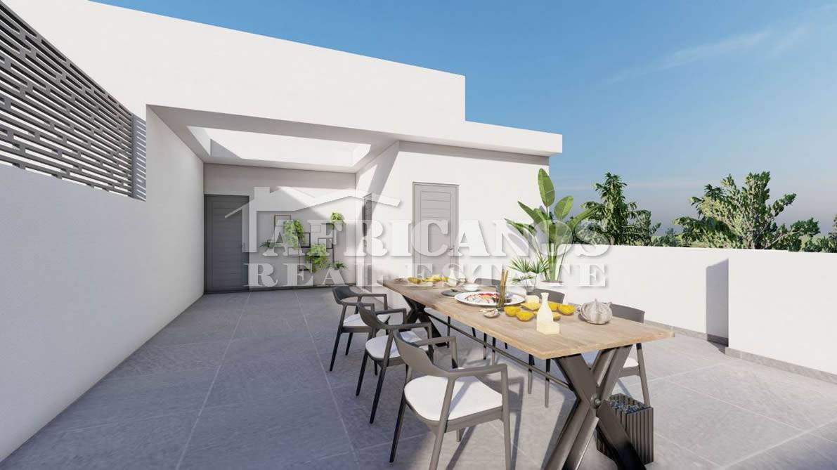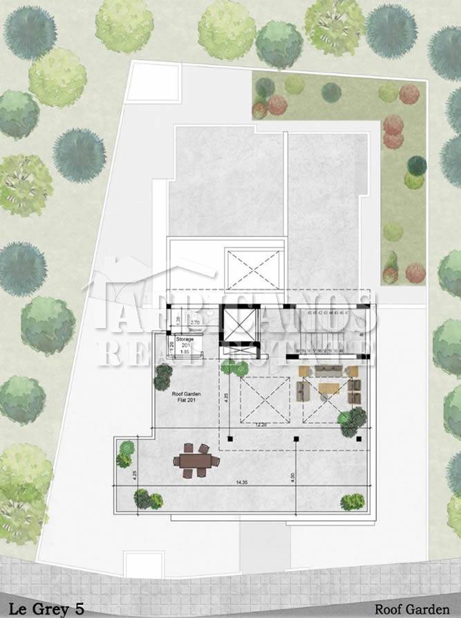 #Apartment for sale in Larnaca. The property consists of 2 bedrooms, open plan kitchen, living room, 1 shower, 1 shower en-suite, 2wc, 24sq.m. covered veranda, 49sq.m. roof garden, storage, covered parking.