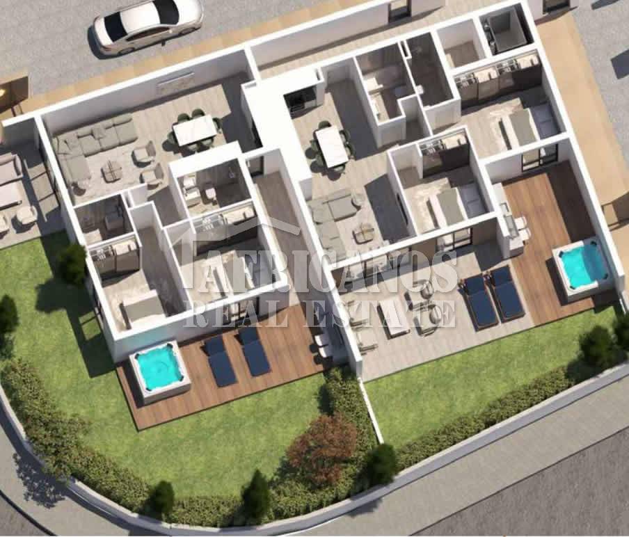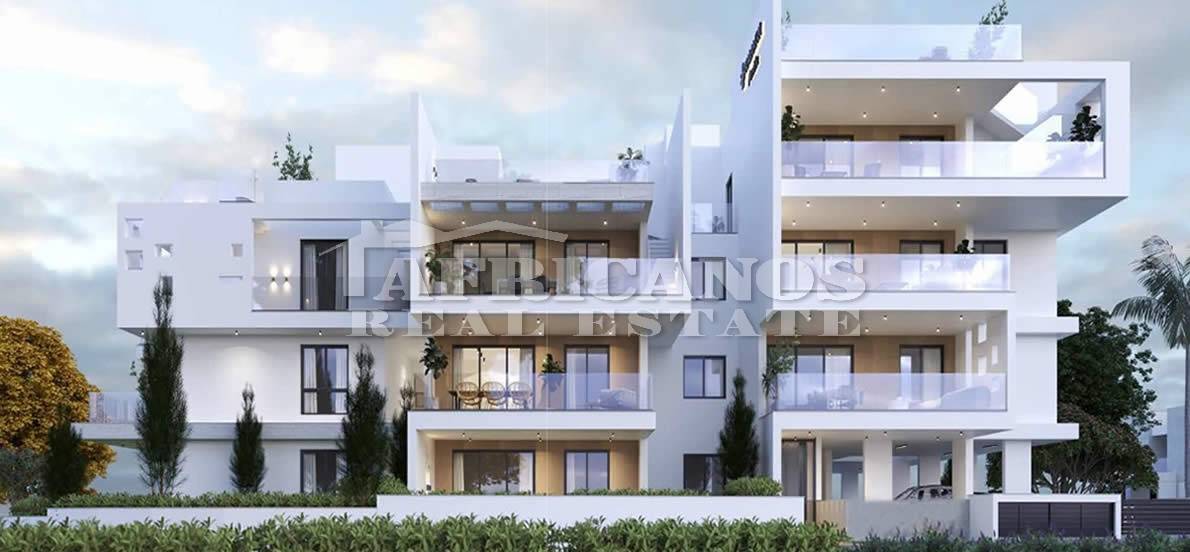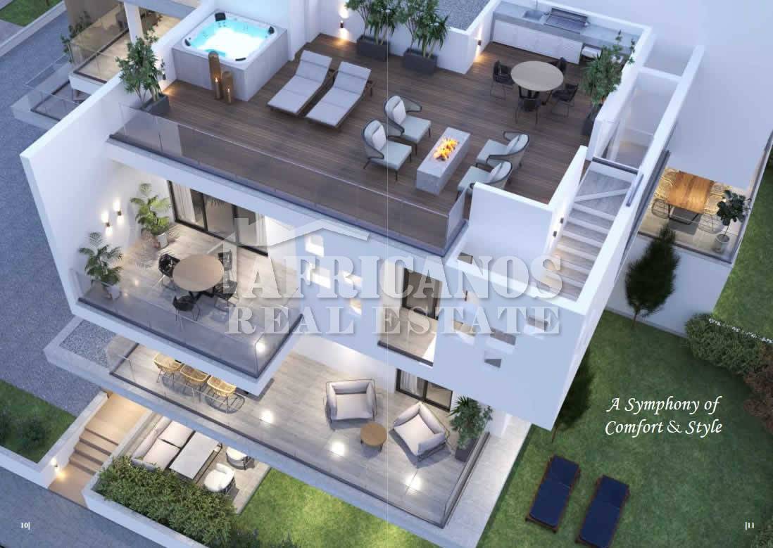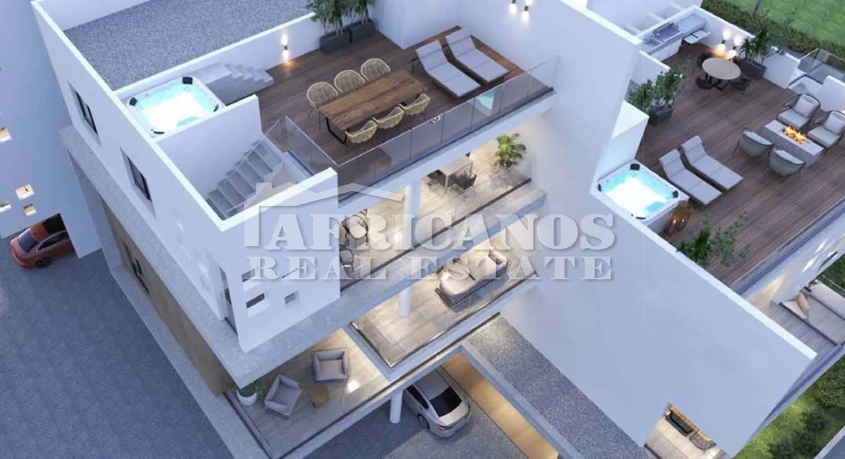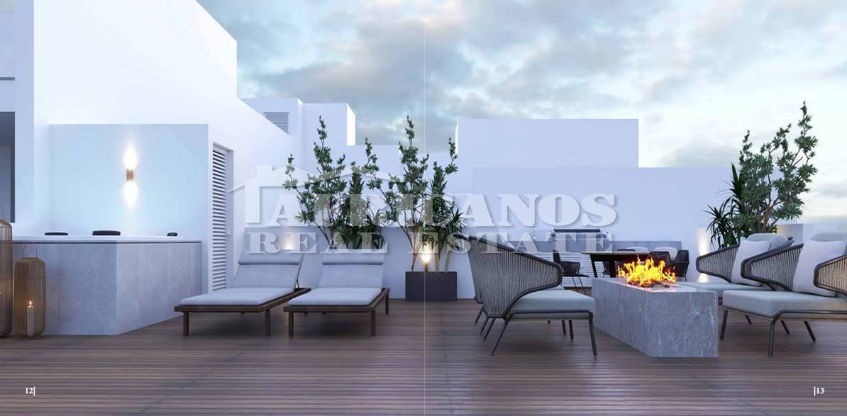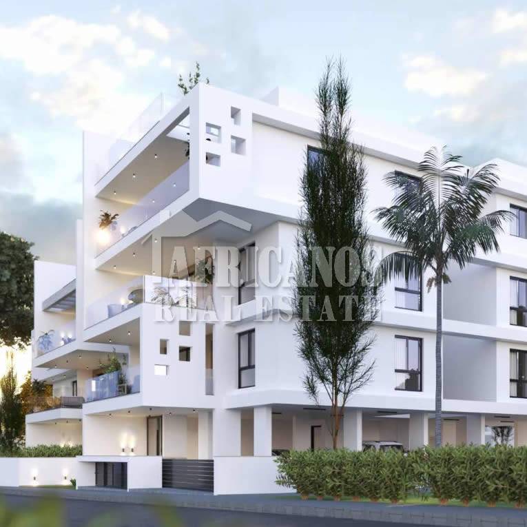 #Apartment for sale in Larnaca. The property consists of 2 bedrooms, open plan kitchen, living room, 1 bath, 1 shower en-suite, 2wc, 29sq.m. covered verandas, 49sq.m. roof garden, covered parking, storage, provision for A/C.