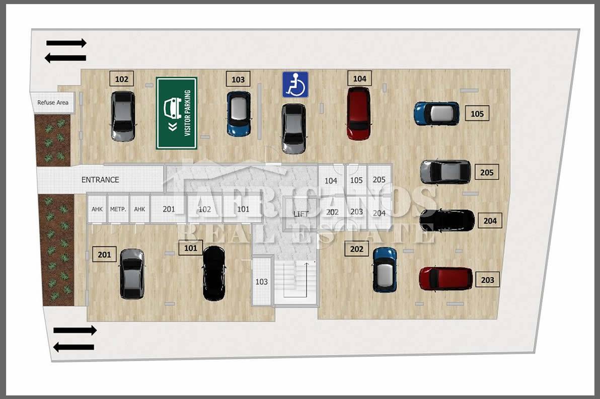 #Apartments for sale in Larnaca, Oroklini area. The properties consist of 2 bedrooms, open plan kitchen, living room, 1 shower, 1 shower en-suite, 2wc,87 - 93sq.m. roof garden, covered parking, storage, 15 - 18sq.m. covered verandas, lobby and entrance with marble flooring, aluminum doors & windows, double glazing with silver aluminum MU3000 thermal or similar, Intercom for each apartment. Construction will begin in early 2026.