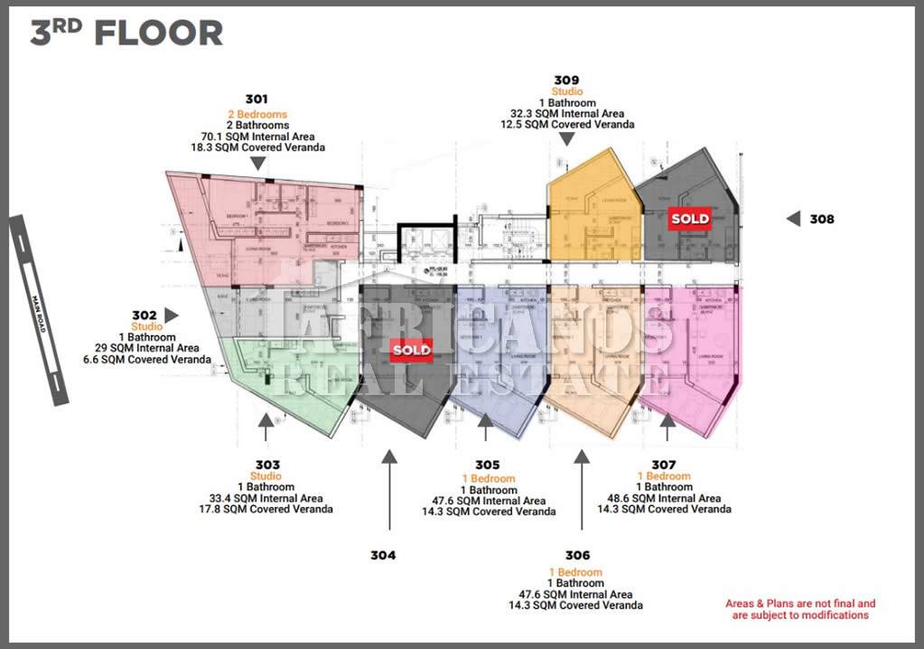 #Apartments for sale in Larnaca centre, The properties consist of 1 bedroom, open plan kitchen, living room, 1 shower, 1wc, 14.3sq.m. covered verandas.