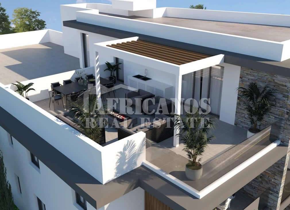 #Penthouse Apartment for sale in Larnaca, Kiti area. The property consists of 2 bedrooms, open plan kitchen, living room, 1 shower, 1 shower en-suite, 2wc, 11sq.m. covered verandas, 60sq.m. private roof garden, covered parking, A/C, Class A Energy sufficiency.