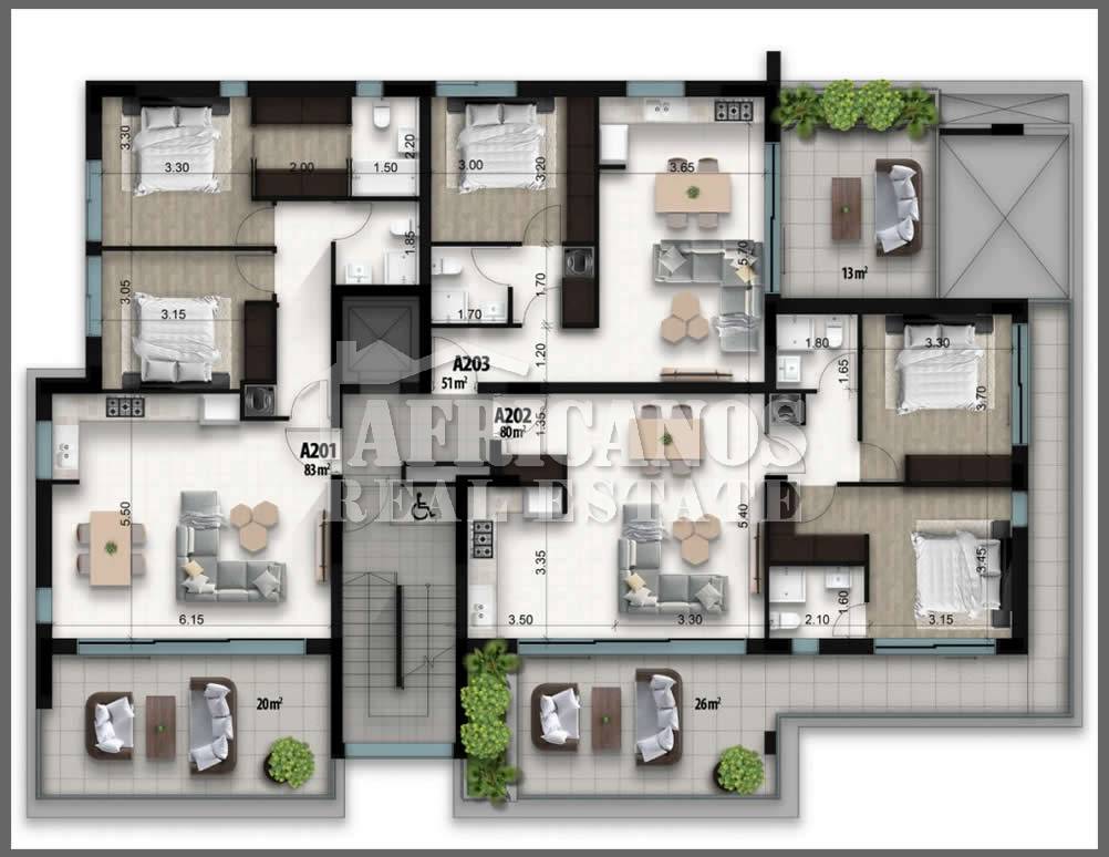 #Apartment for sale in Larnaca, Faneromeni area. The property consists of 2 bedrooms, open plan kitchen, living room, 1 shower, 1 shower en-suite, 2wc, 26sq.m. covered veranda, 9sq.m. uncovered veranda, covered parking, storage, Class AAA Energy Sufficiency, Smart Home.
