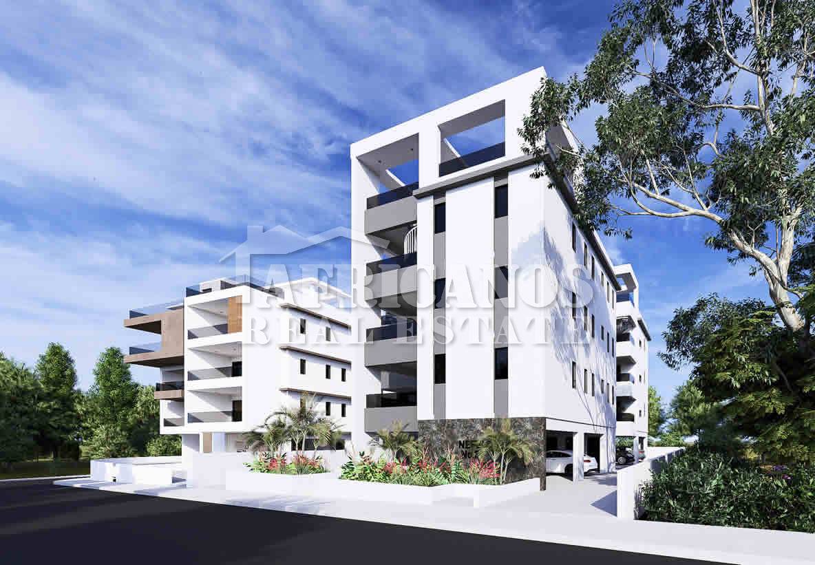 #Apartment for sale in Larnaca, Aradippou area. The property consists of 2 bedrooms, open plan kitchen, living room, 1 bath, 1 shower en-suite, 2wc, 18.45sq.m. covered verandas, covered parking, storage, Class A Energy Sufficiency.